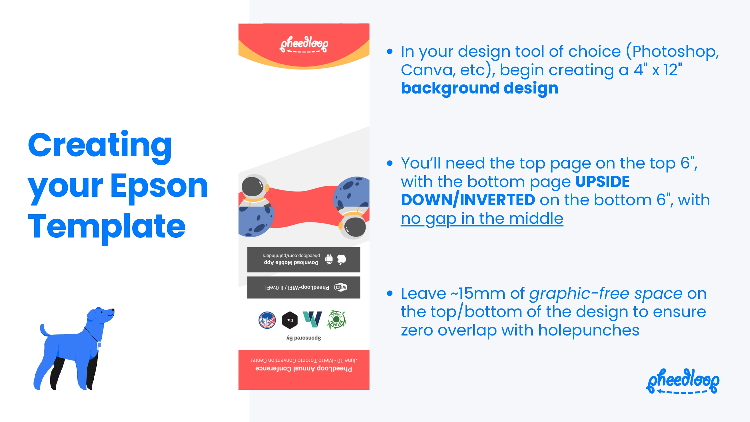 - Leave ~15mm of graphic-free space on the top/bottom of the design to ensure zero overlap with hole punches.