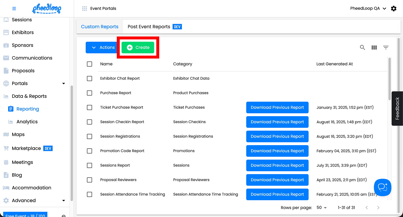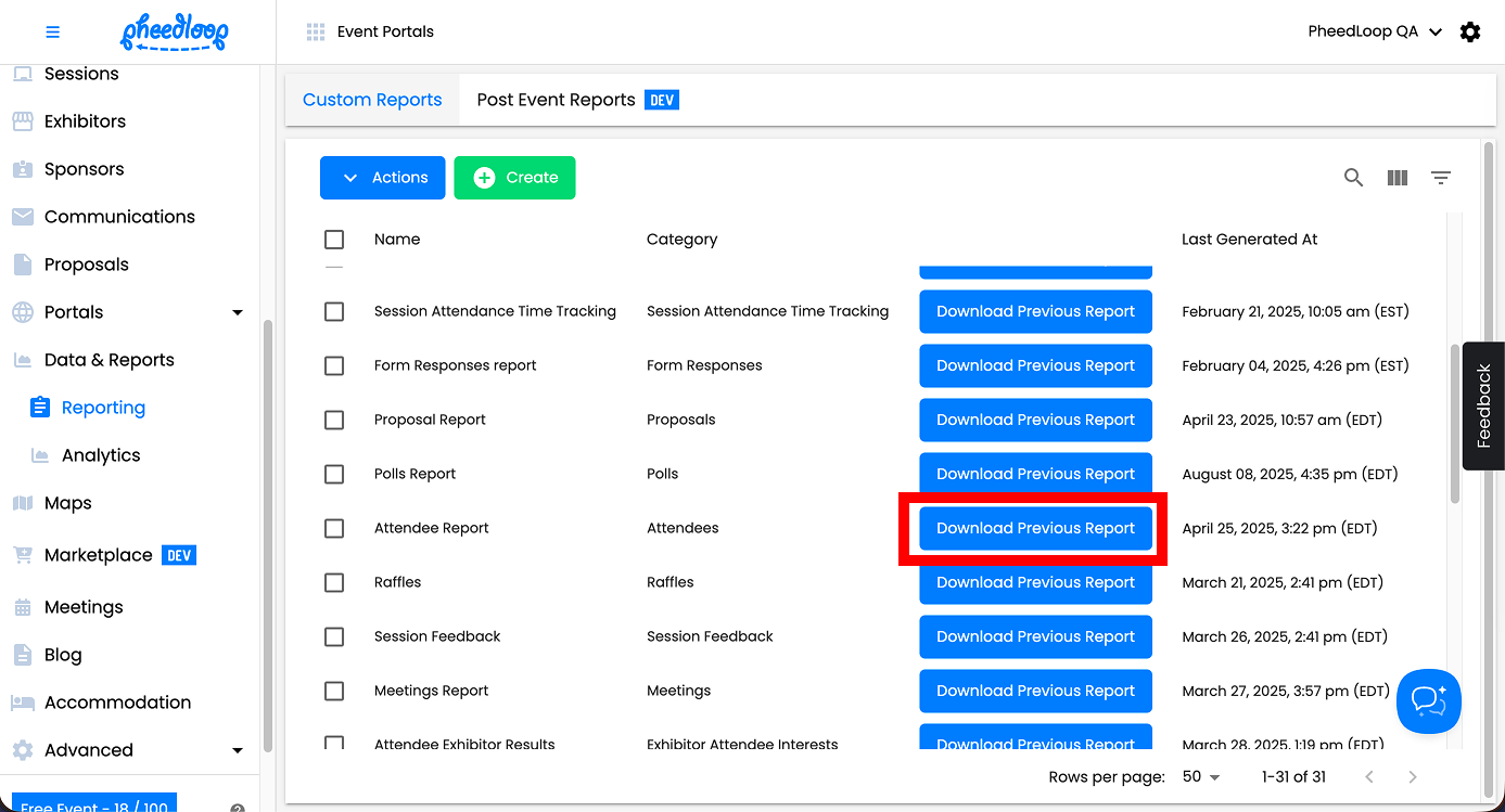 PheedLoop’s built in scanning features allow you to use QR codes to enable features like Lead Retrieval, Session Check-in, and more. In the case that you need a badge code to create a QR code through a printer, you can export the badge codes of all your attendees in a custom report.