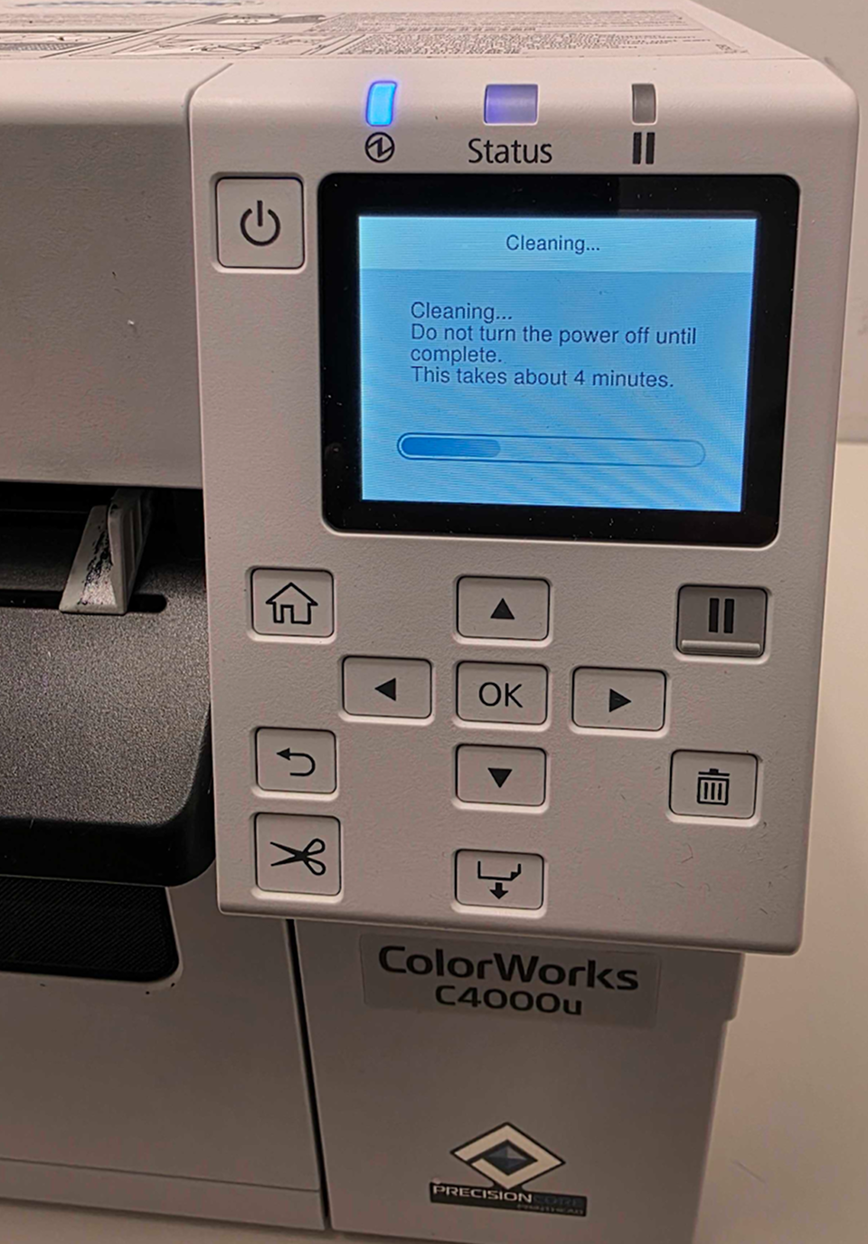 If your Epson printer appears to be “cleaning itself,” this is a normal self-maintenance process and not a cause for concern. The printer typically performs this cycle when it is powered on after being idle for a long time or after printing a large batch of badges. The cleaning process usually takes about 4 minutes, and in some cases, the printer may repeat the cycle up to three times in a row.