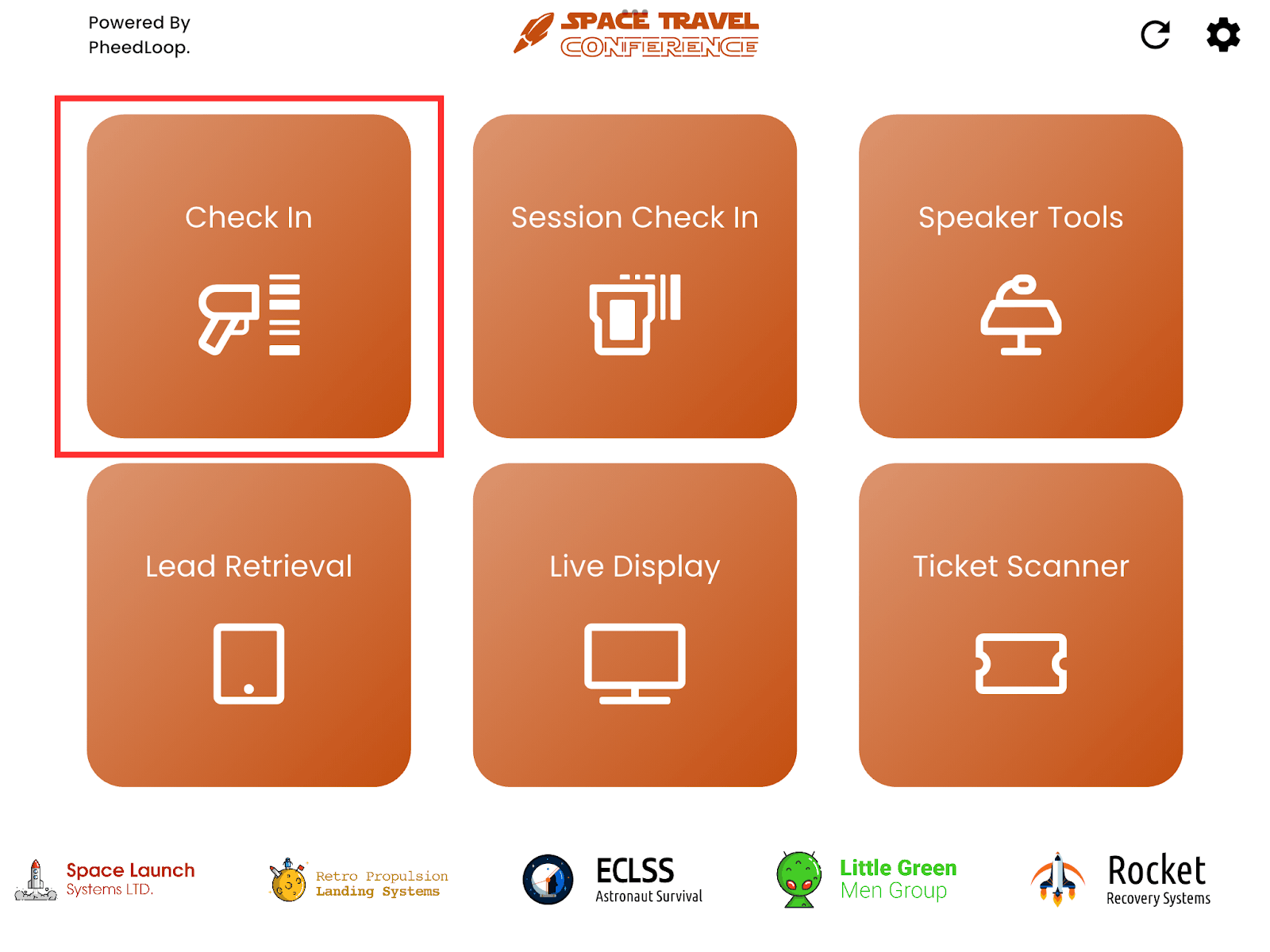 From PheedLoop OnSite, select Check In