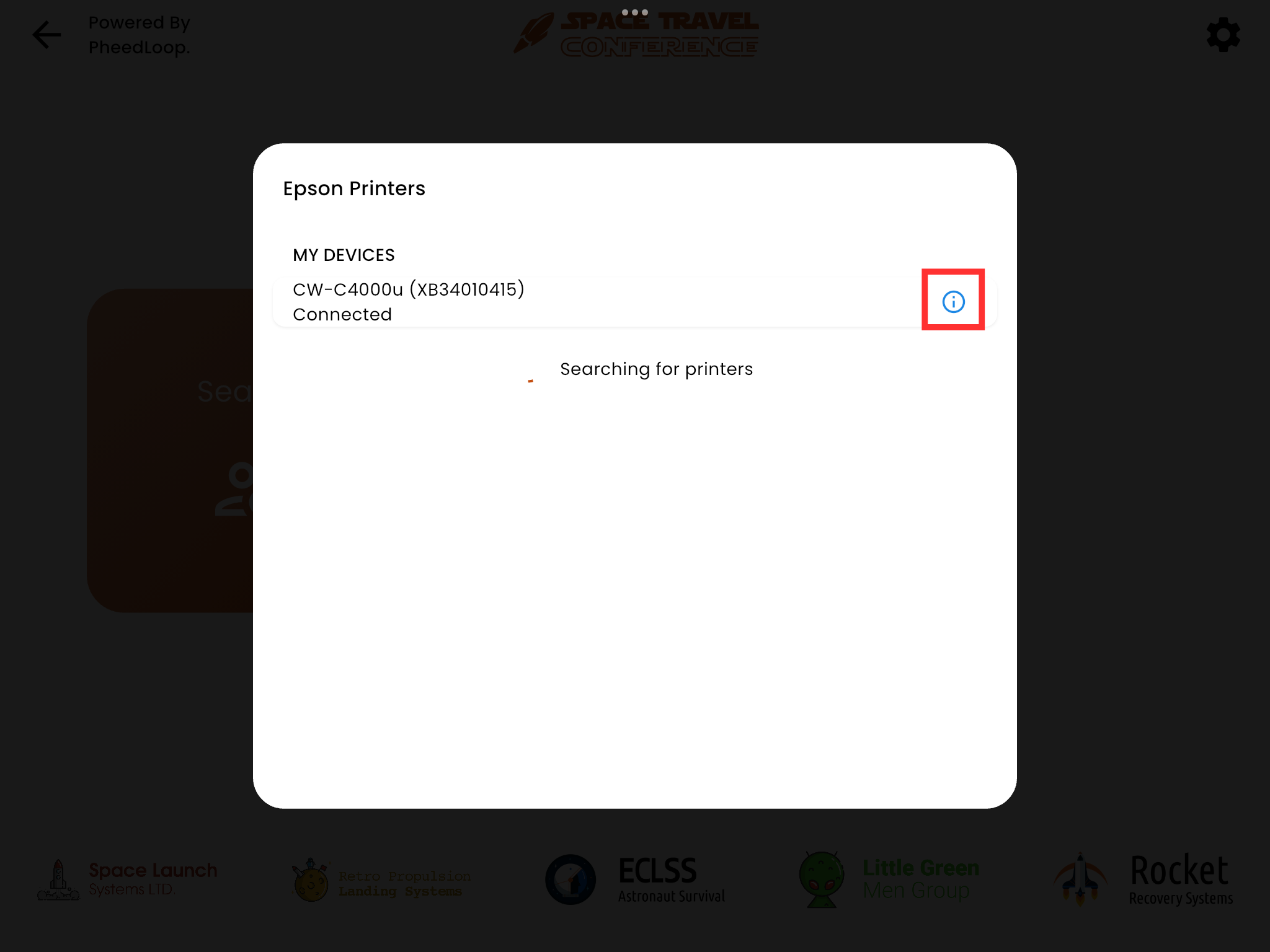 Without this connection, the Epsons will not appear on PheedLoop OnSite. To resolve this, ensure both the Epson and the iPad are connected via the Router Kit provided in the Epson Kiosk under the Network Name: PheedLoop OnSite.