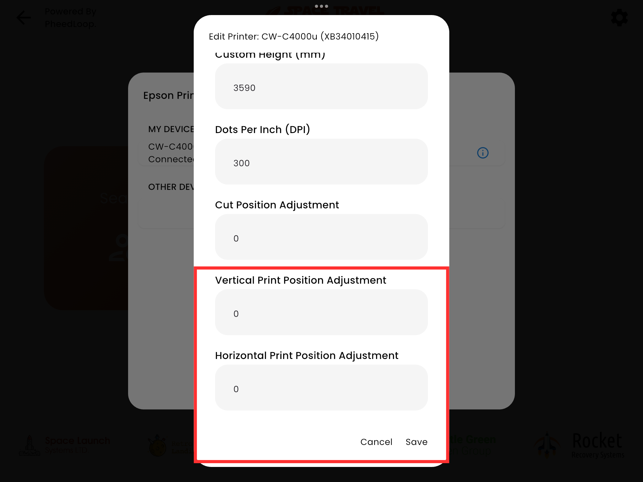 Once added, refresh the PheedLoop OnSite app and conduct a test print to ensure the print is operating correctly. Please refresh the app to ensure changes have taken effect.