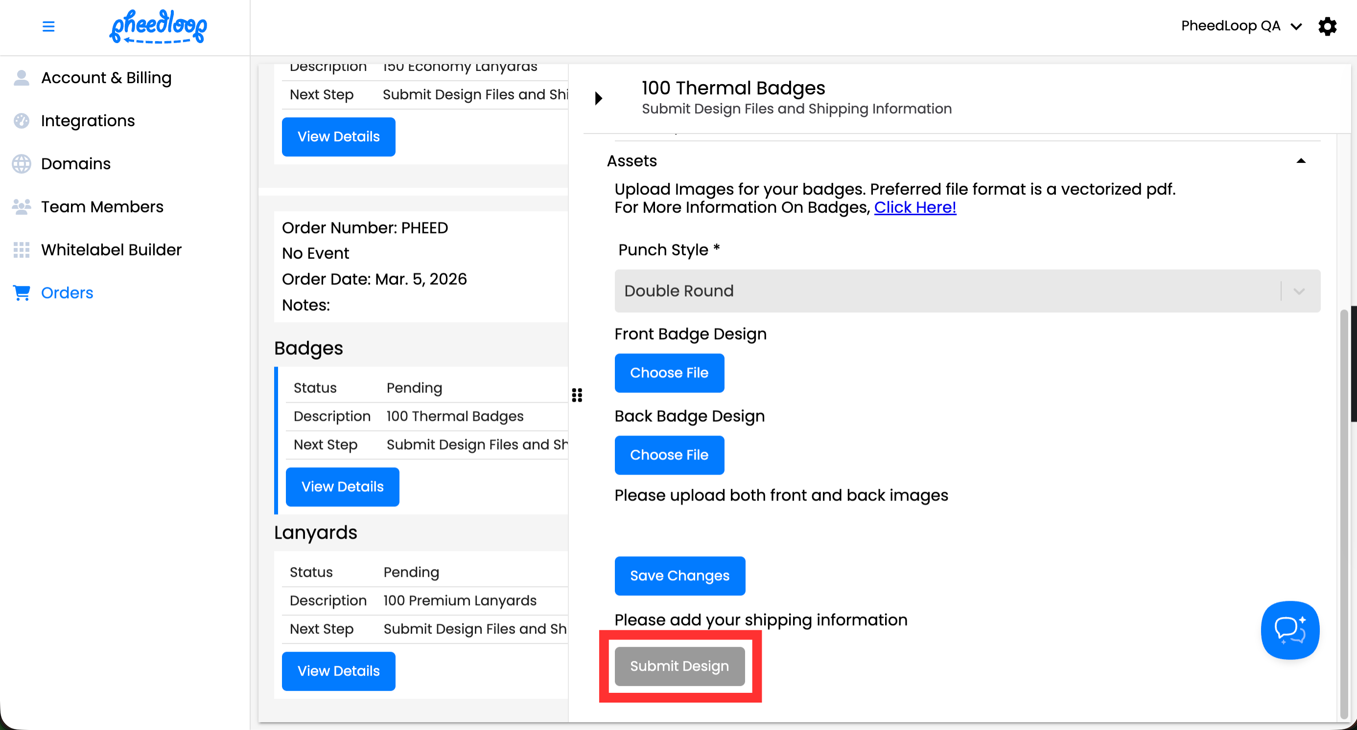 Before your custom event materials can be produced and shipped, you will need to provide your delivery details and upload your artwork. This guide will walk you through setting up your shipping address, uploading your badge and lanyard designs (including specifications for both Premium and Economy lanyards), and officially submitting your order for review by our logistics team.