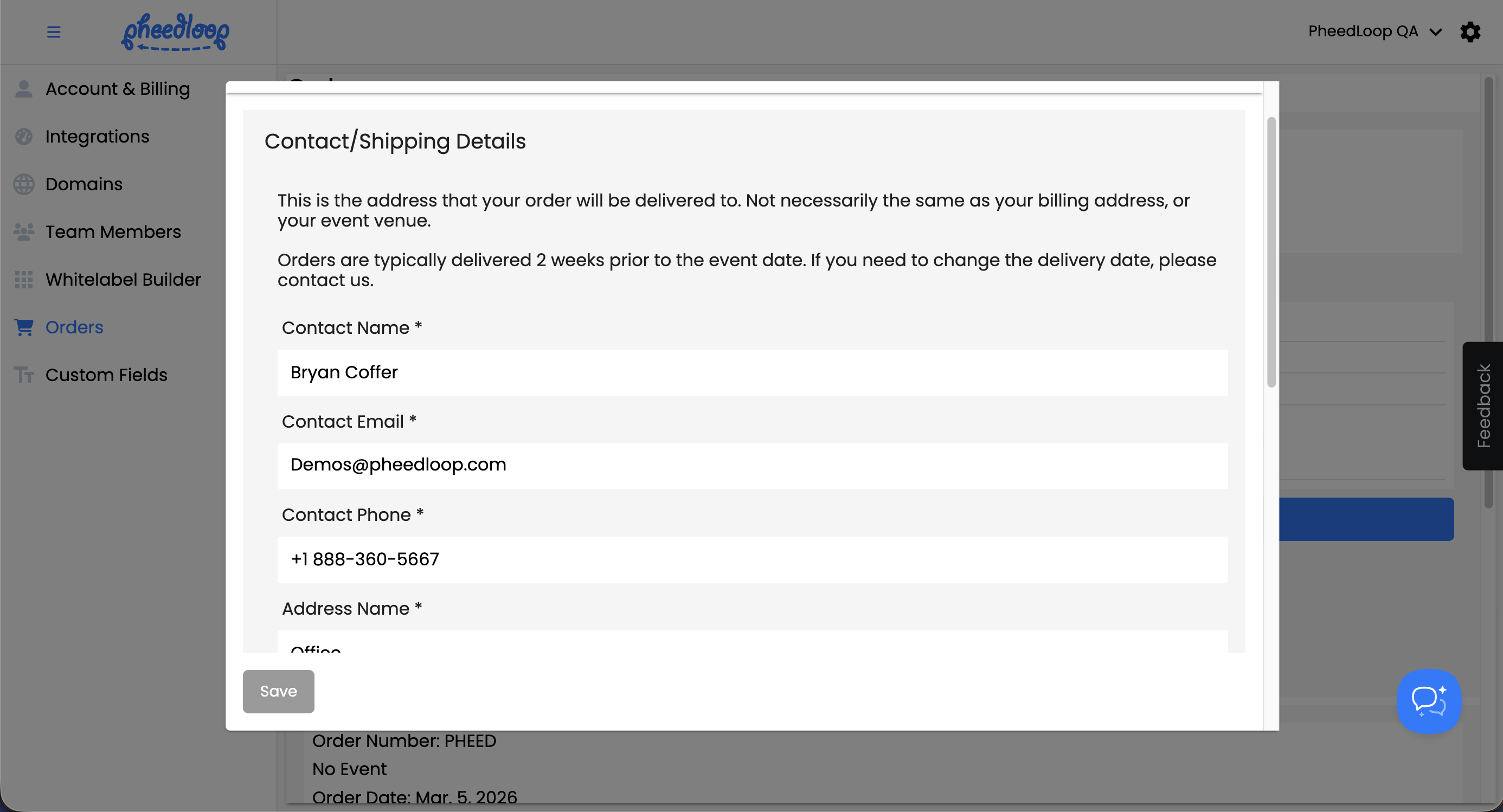 Please ensure the shipping address field is accurate and meets your team's needs.