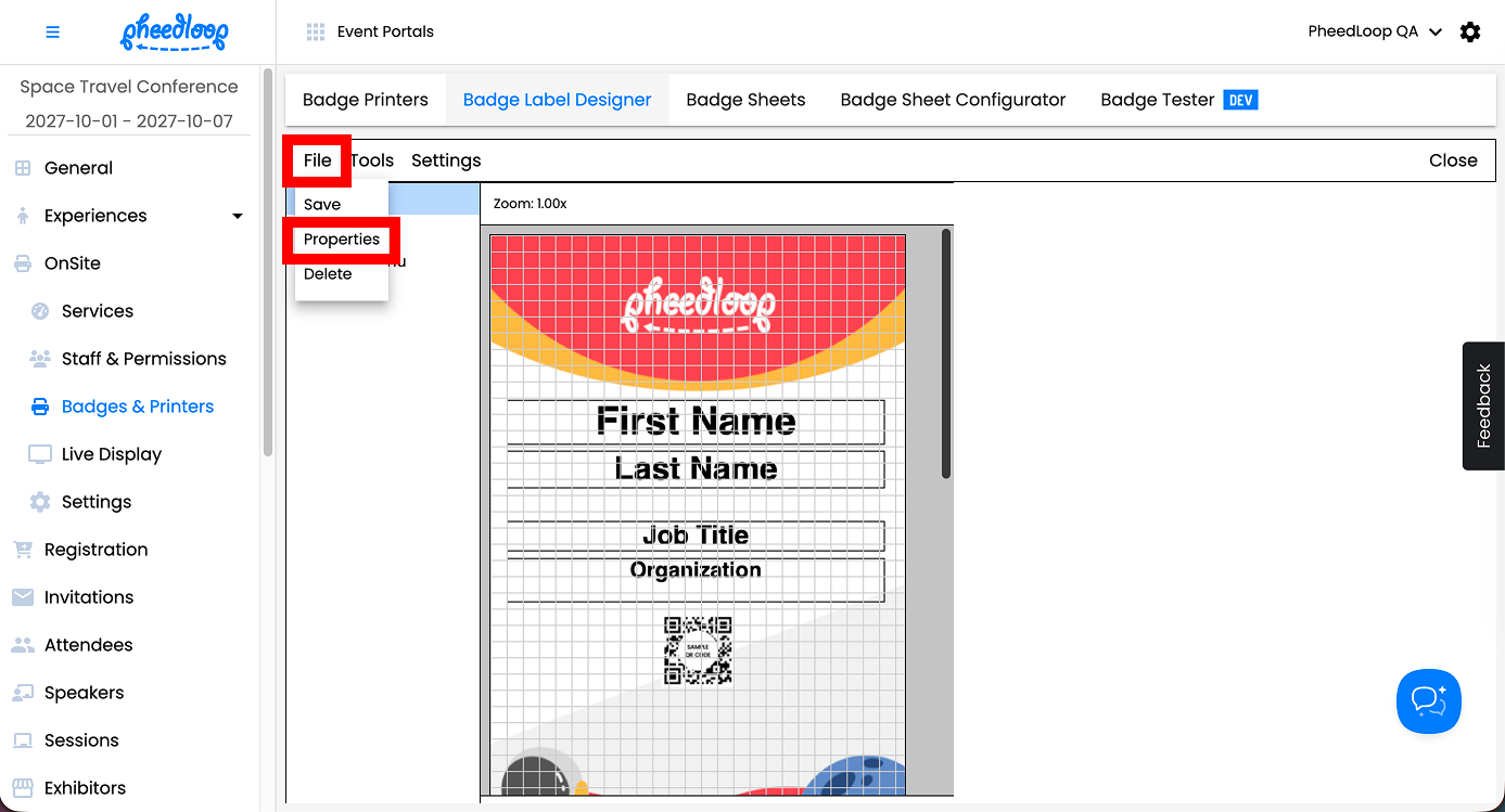 From the Badge Label Designer, select File > Properties