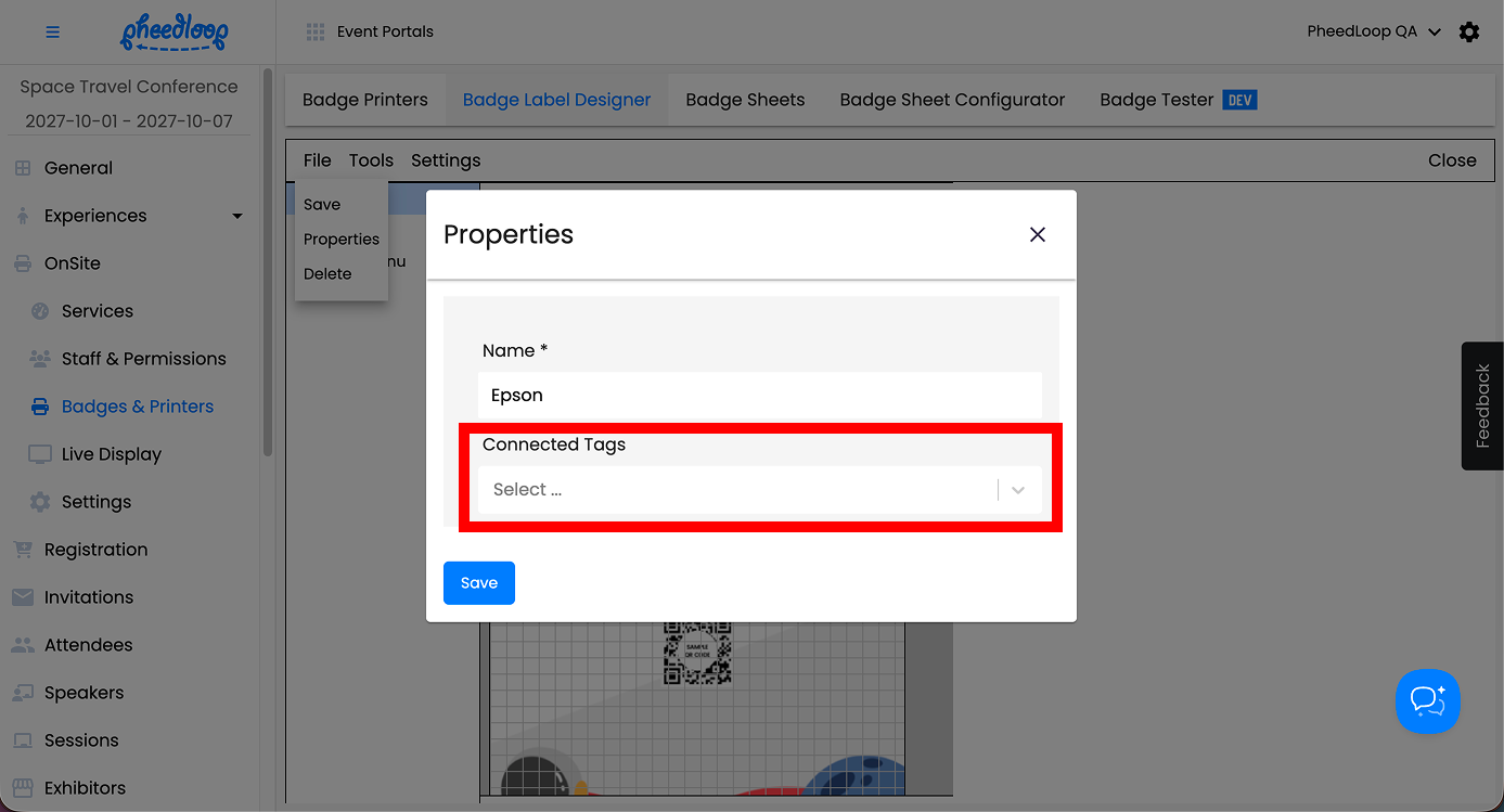 By assigning specific tags—such as "Speaker," "Exhibitor," or "VIP"—to your attendee profiles, you can link those tags to unique custom badge templates. When an attendee checks in, PheedLoop OnSite automatically detects their assigned tag and instantly prints the correct badge designed specifically for their group. Attendees without a specific tag will simply print the standard default template you have created.