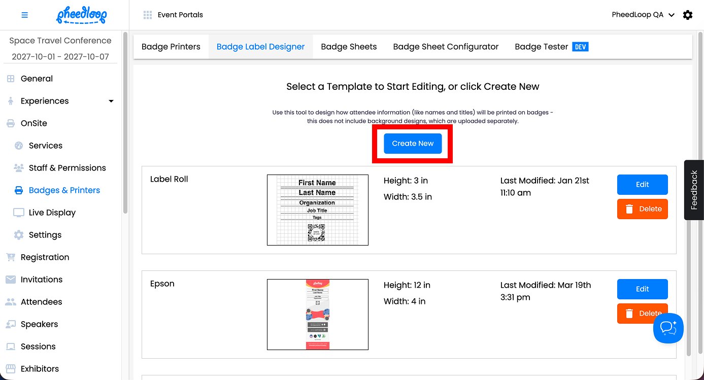 - From the Event Dashboard, navigate to OnSite > Badges & Printers > Badge Label Designer